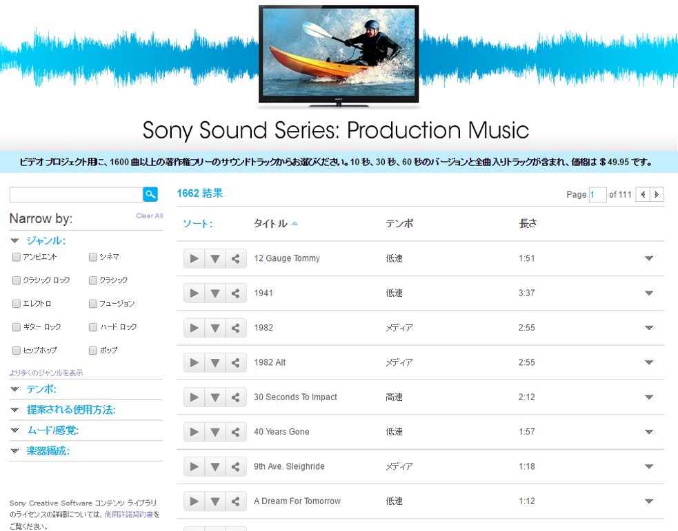 「Vegas Pro 13 Suite」には、「25 Production Music Tracks」という、音楽素材を25曲ダウンロードできる権利がオマケでついていました。
